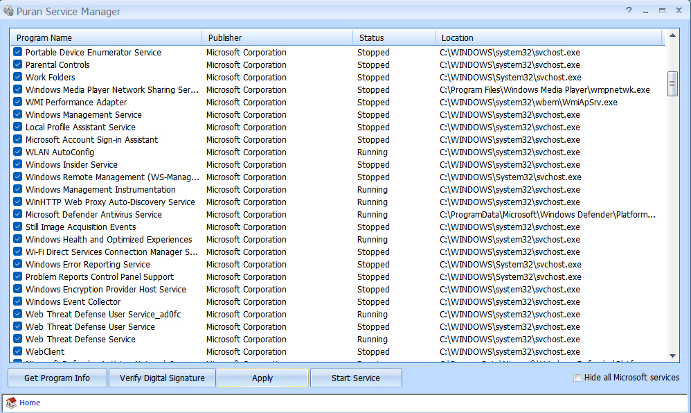 Puran Service Manager is a free utility that can help you to enable/disable Windows services. You can also start and stop any service in a click.